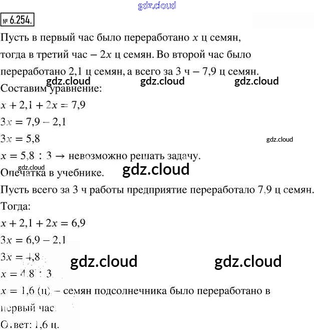 Ответ на задание 6.254 Учебник Математика за 5 (пятый) класс Виленкин, Жохов, Чесноков, Александрова, Шварцбурд 2021 Часть 2