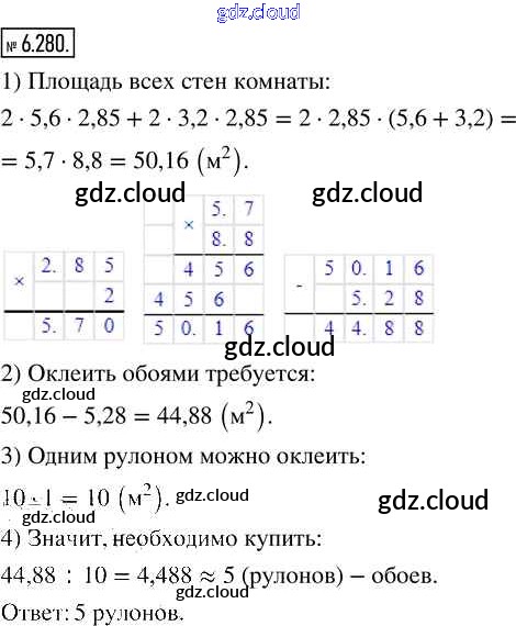 Ответ на задание 6.280 Учебник Математика за 5 (пятый) класс Виленкин, Жохов, Чесноков, Александрова, Шварцбурд 2021 Часть 2