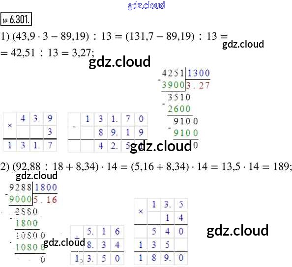 Ответ на задание 6.301 Учебник Математика за 5 (пятый) класс Виленкин, Жохов, Чесноков, Александрова, Шварцбурд 2021 Часть 2
