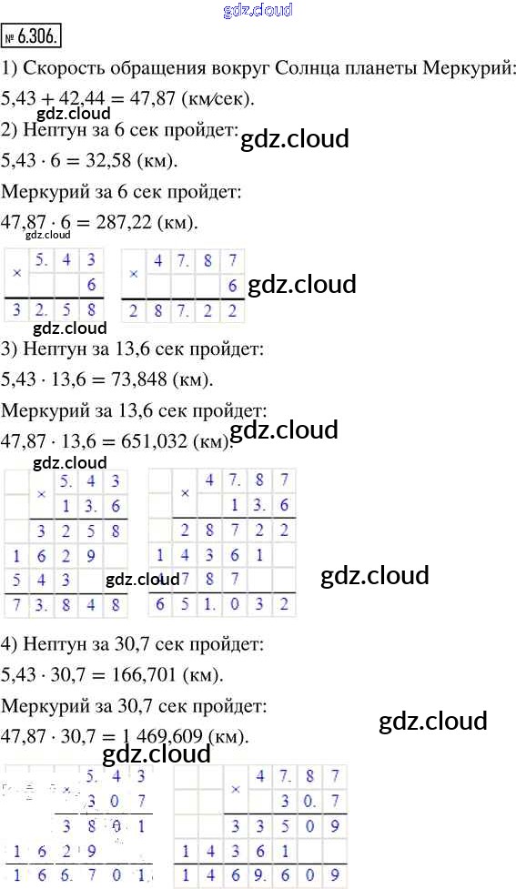 Ответ на задание 6.306 Учебник Математика за 5 (пятый) класс Виленкин, Жохов, Чесноков, Александрова, Шварцбурд 2021 Часть 2