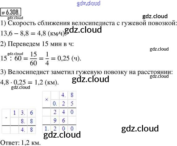 Ответ на задание 6.308 Учебник Математика за 5 (пятый) класс Виленкин, Жохов, Чесноков, Александрова, Шварцбурд 2021 Часть 2