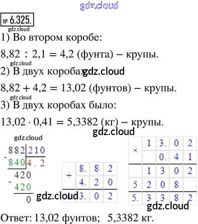 Ответ на задание 6.325 Учебник Математика за 5 (пятый) класс Виленкин, Жохов, Чесноков, Александрова, Шварцбурд 2021 Часть 2