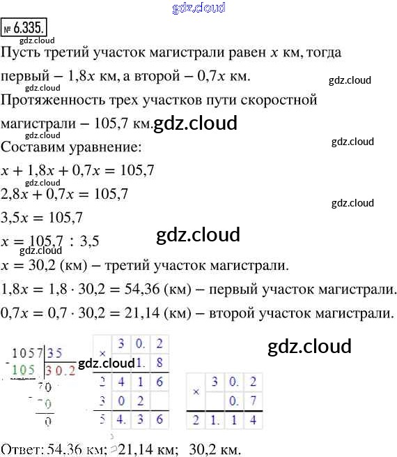 Ответ на задание 6.335 Учебник Математика за 5 (пятый) класс Виленкин, Жохов, Чесноков, Александрова, Шварцбурд 2021 Часть 2