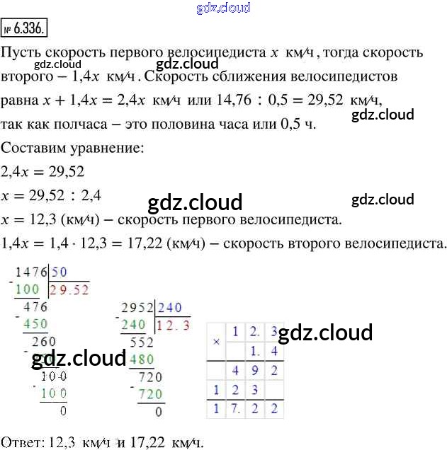 Ответ на задание 6.336 Учебник Математика за 5 (пятый) класс Виленкин, Жохов, Чесноков, Александрова, Шварцбурд 2021 Часть 2