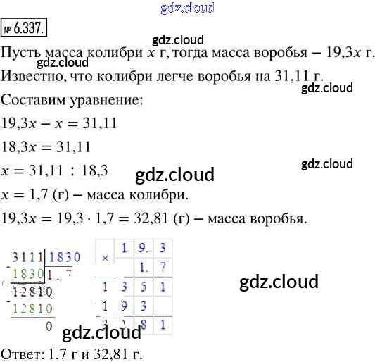 Ответ на задание 6.337 Учебник Математика за 5 (пятый) класс Виленкин, Жохов, Чесноков, Александрова, Шварцбурд 2021 Часть 2