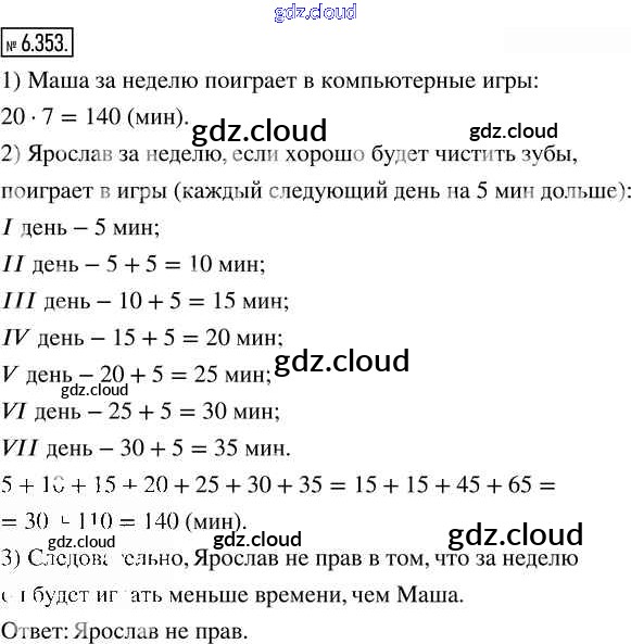 Ответ на задание 6.353 Учебник Математика за 5 (пятый) класс Виленкин, Жохов, Чесноков, Александрова, Шварцбурд 2021 Часть 2