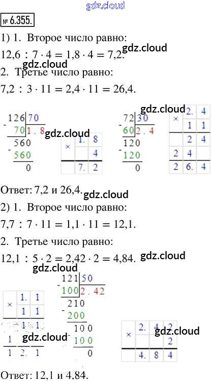 Ответ на задание 6.355 Учебник Математика за 5 (пятый) класс Виленкин, Жохов, Чесноков, Александрова, Шварцбурд 2021 Часть 2