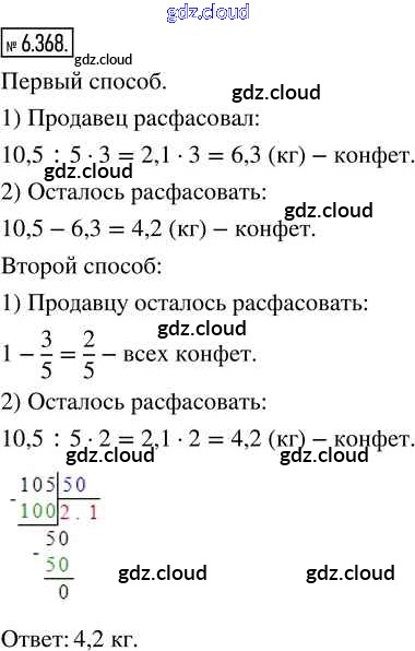 Ответ на задание 6.368 Учебник Математика за 5 (пятый) класс Виленкин, Жохов, Чесноков, Александрова, Шварцбурд 2021 Часть 2