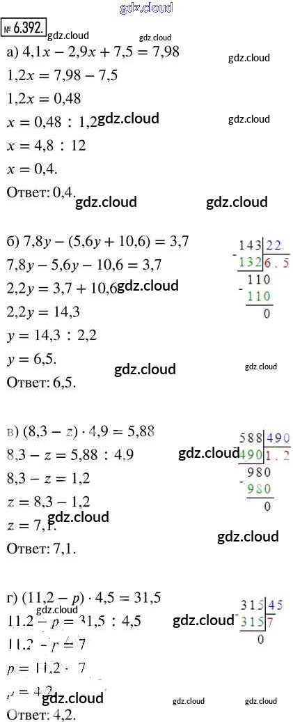 Ответ на задание 6.392 Учебник Математика за 5 (пятый) класс Виленкин, Жохов, Чесноков, Александрова, Шварцбурд 2021 Часть 2