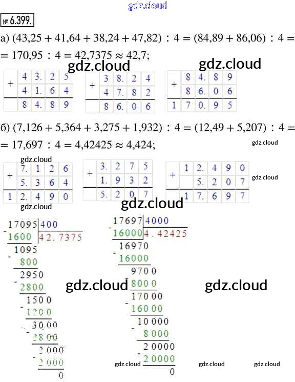 Ответ на задание 6.399 Учебник Математика за 5 (пятый) класс Виленкин, Жохов, Чесноков, Александрова, Шварцбурд 2021 Часть 2