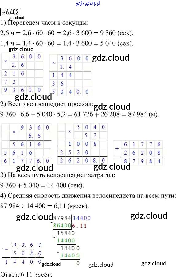 Ответ на задание 6.402 Учебник Математика за 5 (пятый) класс Виленкин, Жохов, Чесноков, Александрова, Шварцбурд 2021 Часть 2