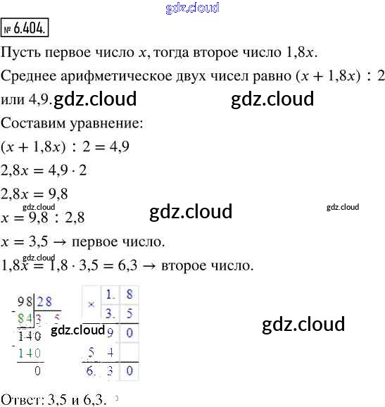 Ответ на задание 6.404 Учебник Математика за 5 (пятый) класс Виленкин, Жохов, Чесноков, Александрова, Шварцбурд 2021 Часть 2
