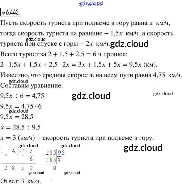 Ответ на задание 6.443 Учебник Математика за 5 (пятый) класс Виленкин, Жохов, Чесноков, Александрова, Шварцбурд 2021 Часть 2