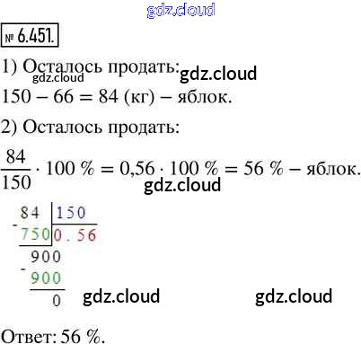 Ответ на задание 6.451 Учебник Математика за 5 (пятый) класс Виленкин, Жохов, Чесноков, Александрова, Шварцбурд 2021 Часть 2