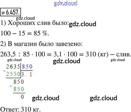 Ответ на задание 6.457 Учебник Математика за 5 (пятый) класс Виленкин, Жохов, Чесноков, Александрова, Шварцбурд 2021 Часть 2