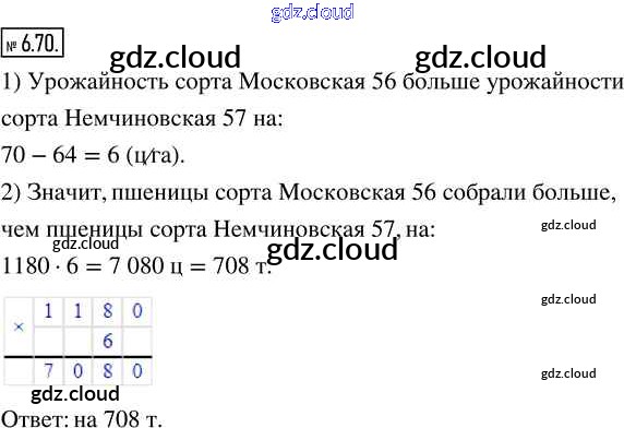 Ответ на задание 6.70 Учебник Математика за 5 (пятый) класс Виленкин, Жохов, Чесноков, Александрова, Шварцбурд 2021 Часть 2