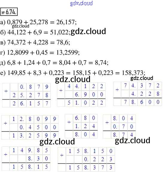 Ответ на задание 6.74 Учебник Математика за 5 (пятый) класс Виленкин, Жохов, Чесноков, Александрова, Шварцбурд 2021 Часть 2
