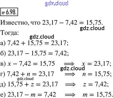 Ответ на задание 6.98 Учебник Математика за 5 (пятый) класс Виленкин, Жохов, Чесноков, Александрова, Шварцбурд 2021 Часть 2