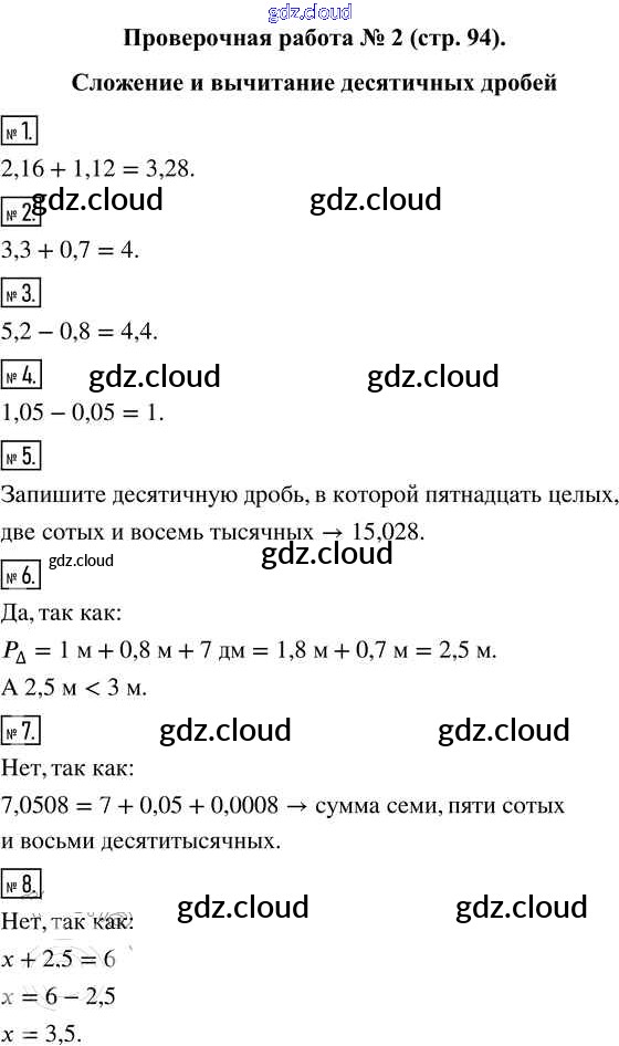 Ответ на задание стр.94 Учебник Математика за 5 (пятый) класс Виленкин, Жохов, Чесноков, Александрова, Шварцбурд 2021 Часть 2