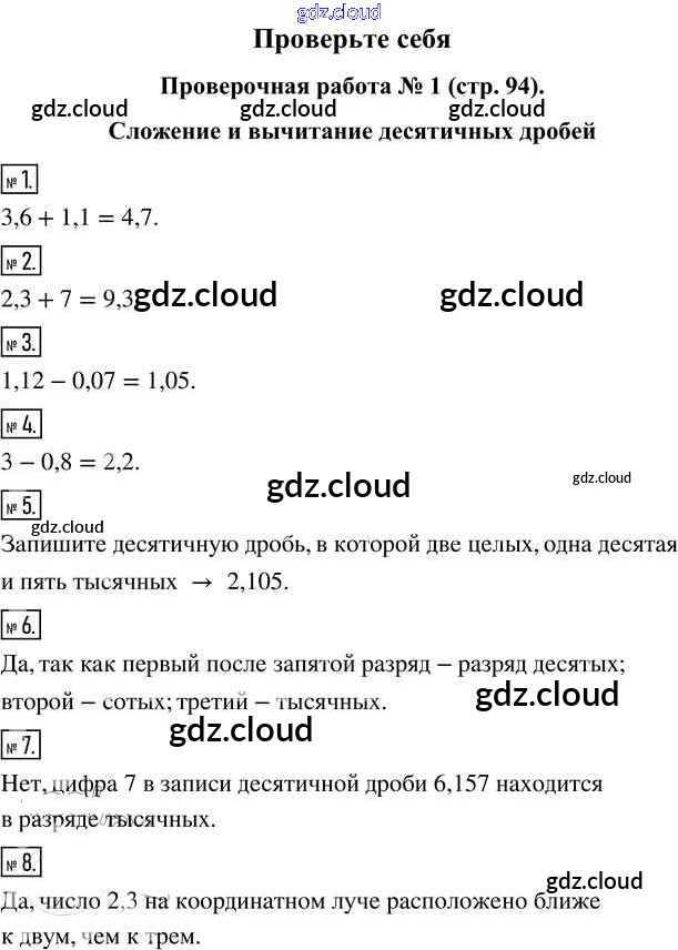 Проверочные работы Часть 2 (ответы) по Математике 5 класс Учебник Виленкин Часть 2 Просвещение