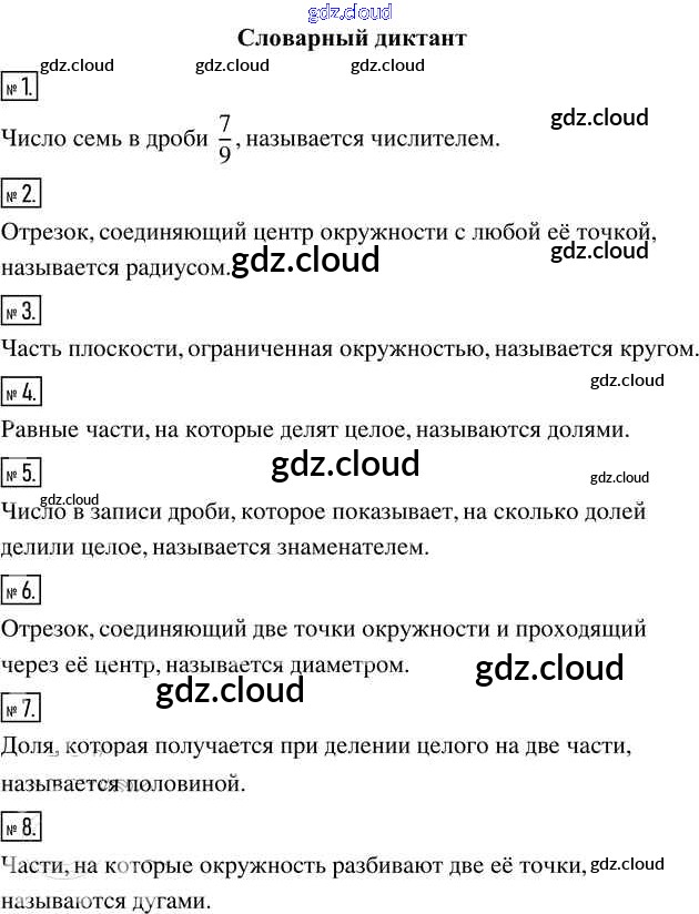 Словарный диктант Часть 2 (ответы) по Математике 5 класс Учебник Виленкин Часть 2 Просвещение