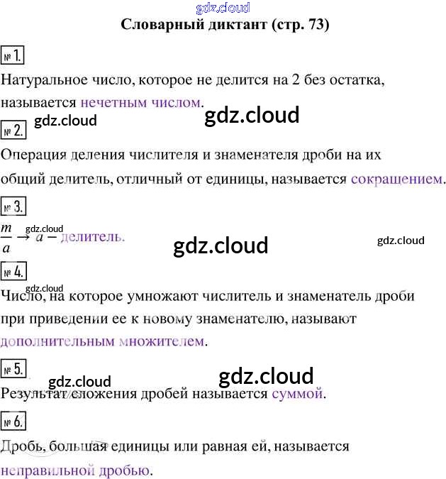 Словарный диктант Часть 2 (ответы) по Математике 5 класс Учебник Виленкин Часть 2 Просвещение