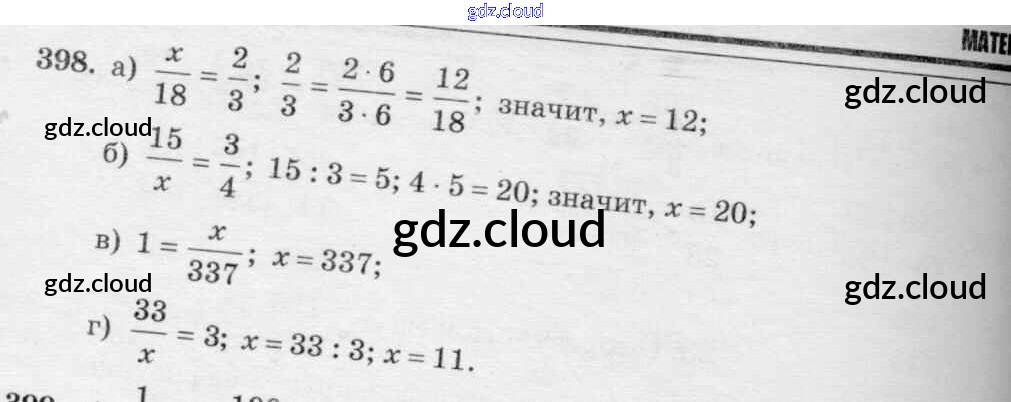 Ответ на задание 398 Учебник Математика за 5 (пятый) класс Зубарева, Мордкович 2015