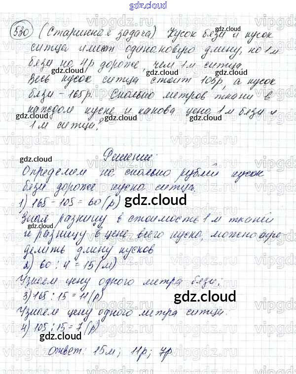 Ответ на задание 530 Учебник Математика за 5 (пятый) класс Зубарева, Мордкович 2015