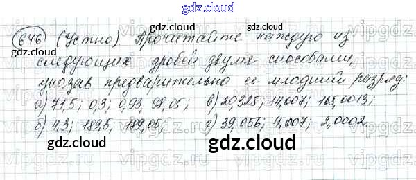 Ответ на задание 646 Учебник Математика за 5 (пятый) класс Зубарева, Мордкович 2015