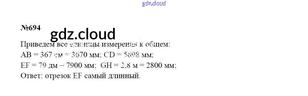 Ответ на задание 694 Учебник Математика за 5 (пятый) класс Зубарева, Мордкович 2015