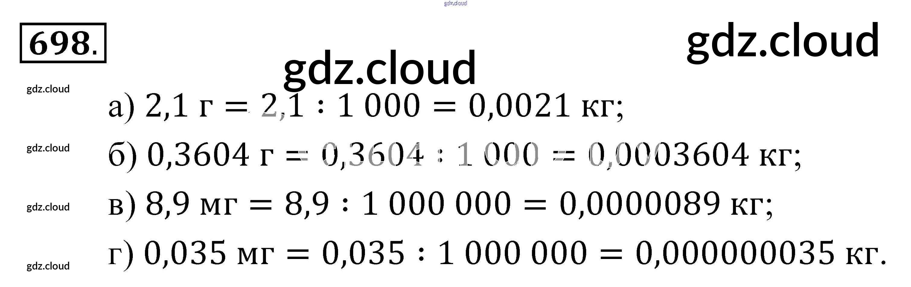 Ответ на задание 698 Учебник Математика за 5 (пятый) класс Зубарева, Мордкович 2015
