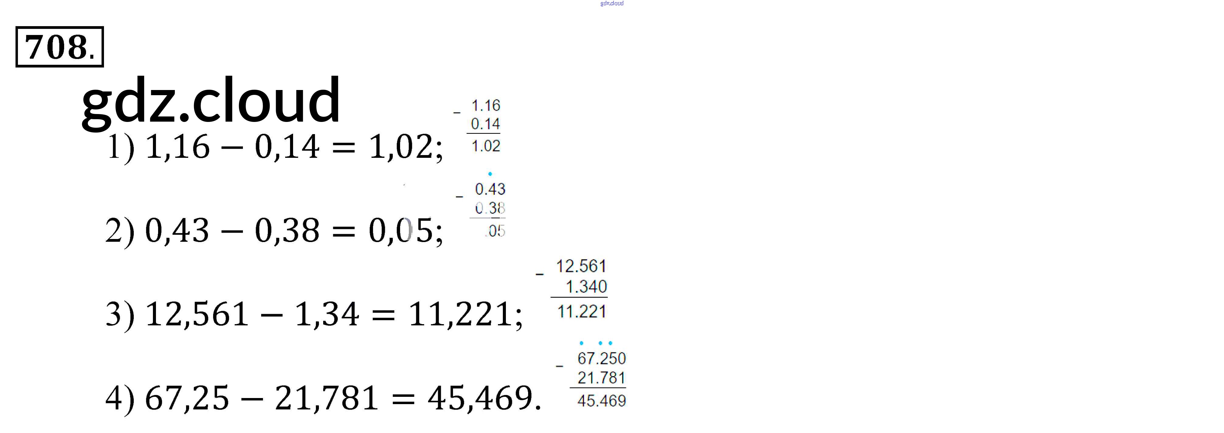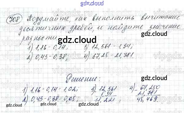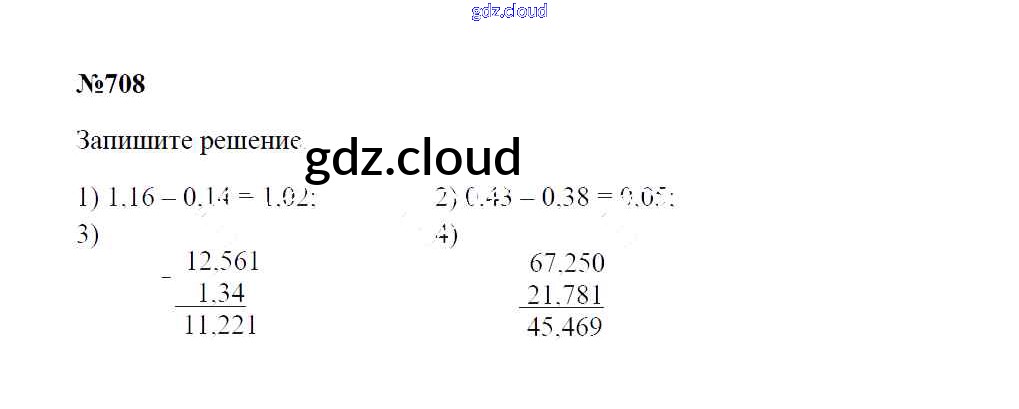 Ответ на задание 708 Учебник Математика за 5 (пятый) класс Зубарева, Мордкович 2015