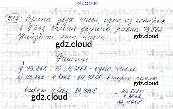 Ответ на задание 727 Учебник Математика за 5 (пятый) класс Зубарева, Мордкович 2015