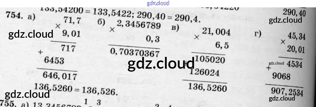 Ответ на задание 754 Учебник Математика за 5 (пятый) класс Зубарева, Мордкович 2015