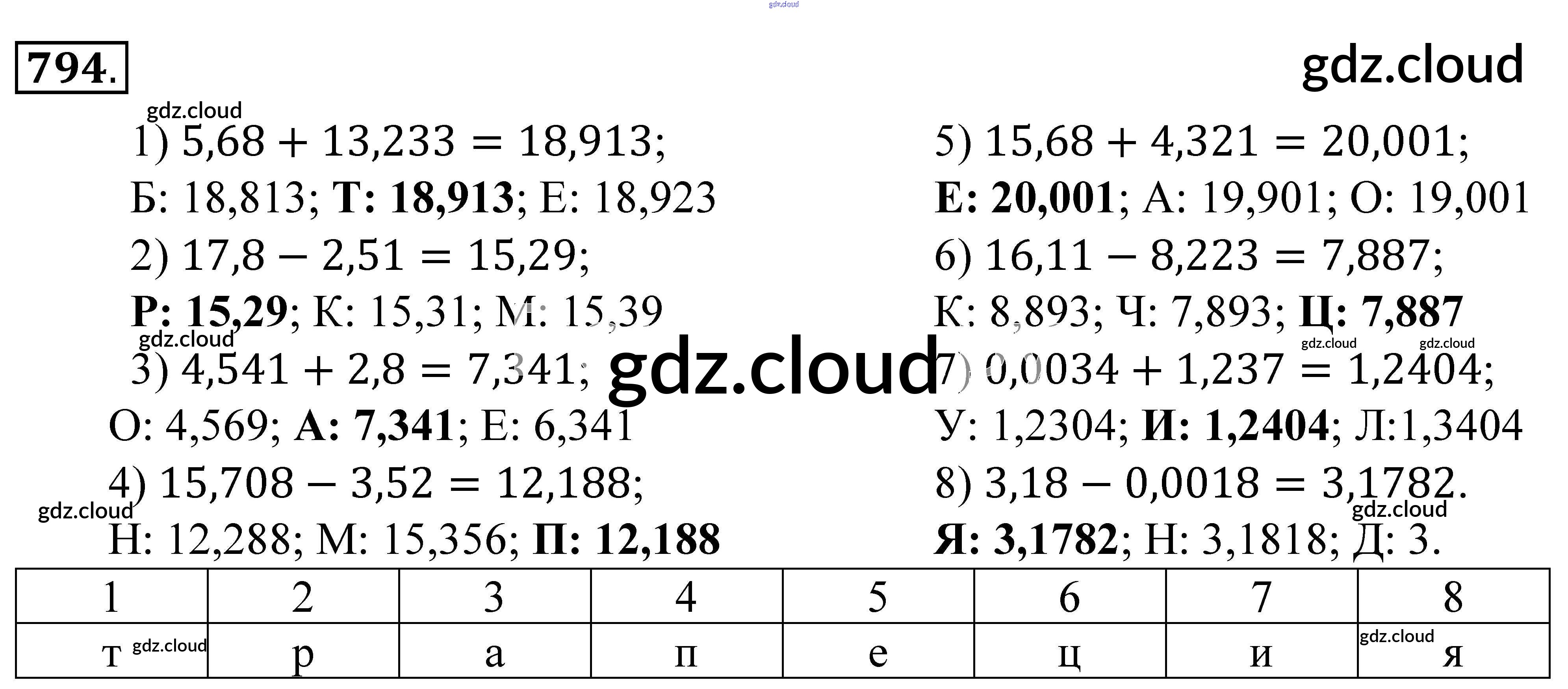 Ответ на задание 794 Учебник Математика за 5 (пятый) класс Зубарева, Мордкович 2015