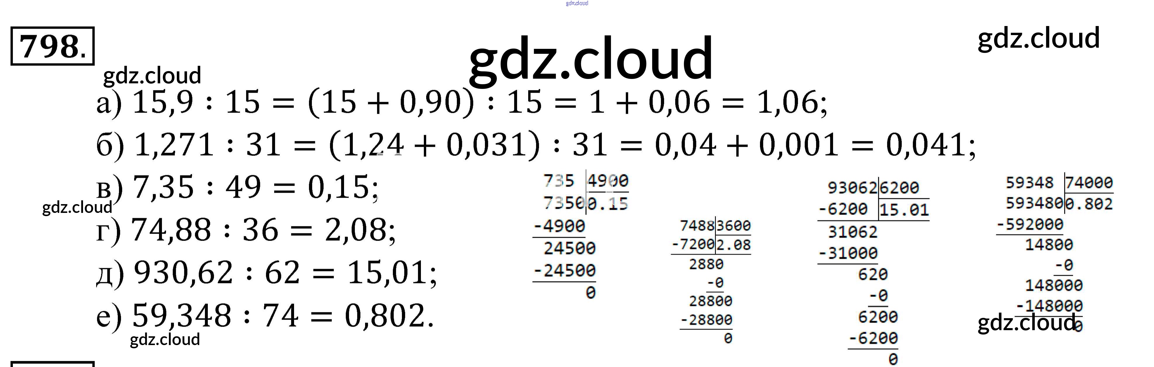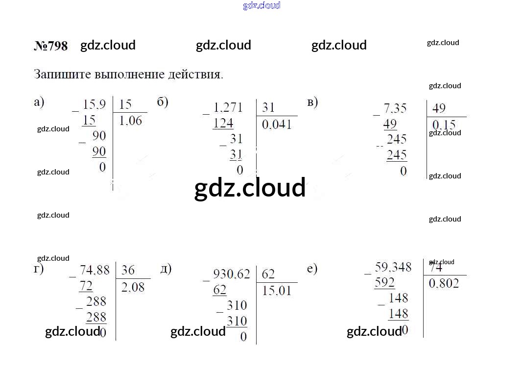 Ответ на задание 798 Учебник Математика за 5 (пятый) класс Зубарева, Мордкович 2015