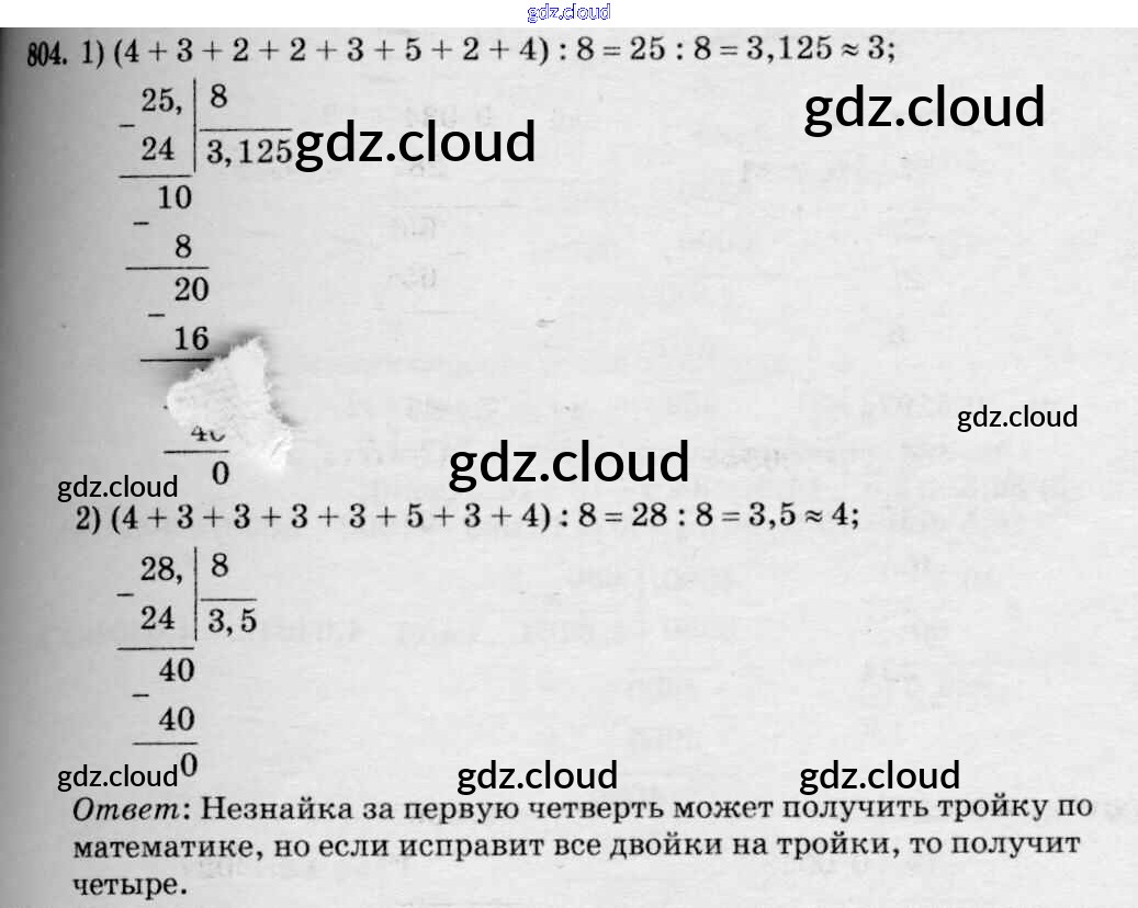 Ответ на задание 804 Учебник Математика за 5 (пятый) класс Зубарева, Мордкович 2015