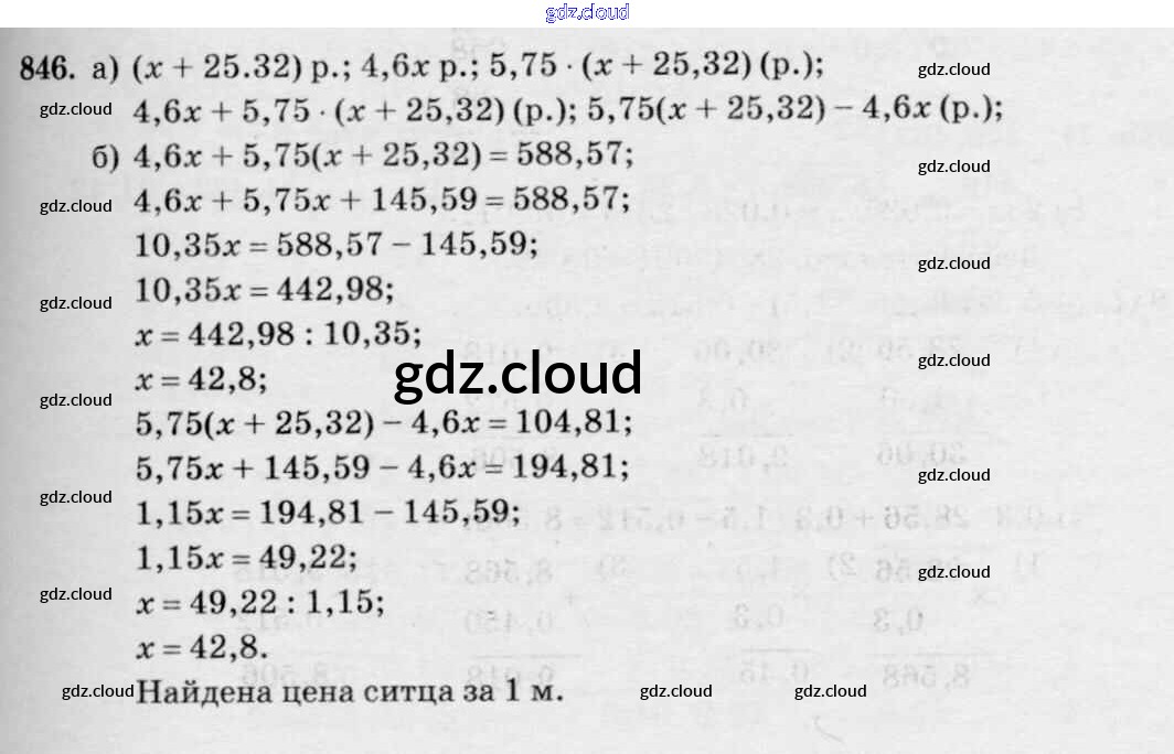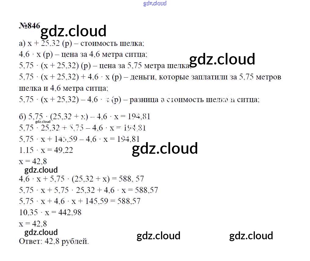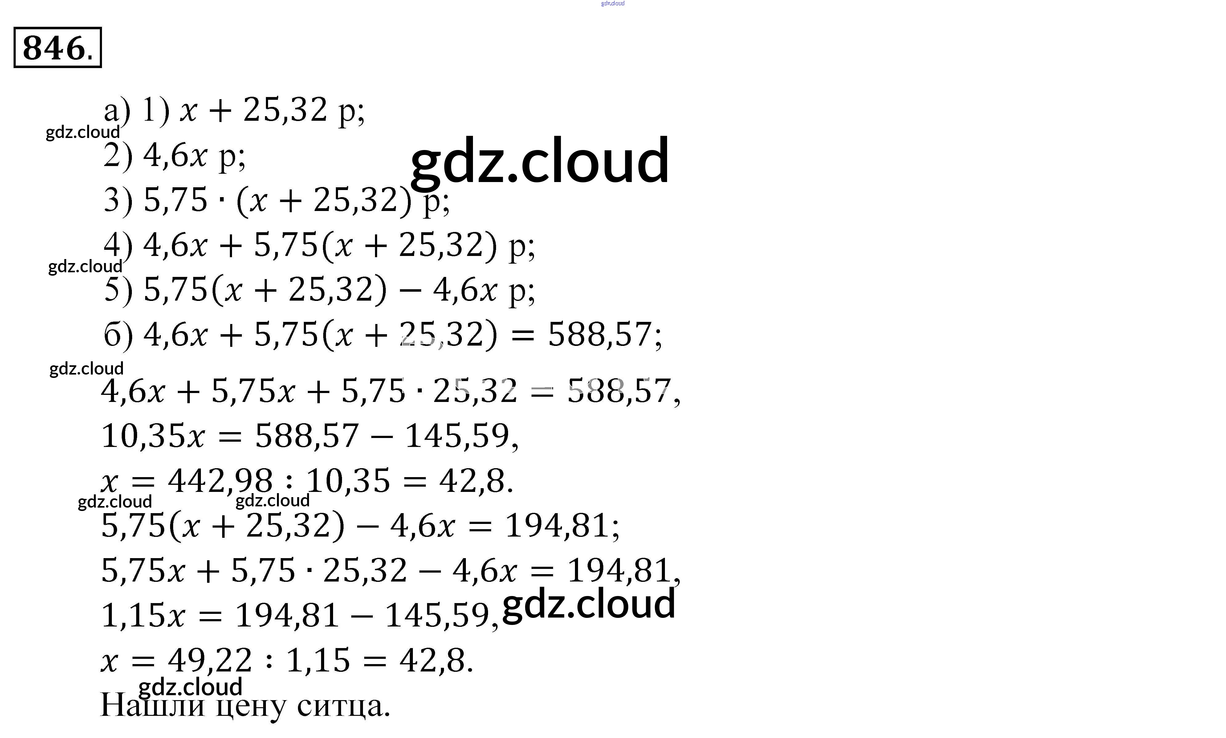 Ответ на задание 846 Учебник Математика за 5 (пятый) класс Зубарева, Мордкович 2015