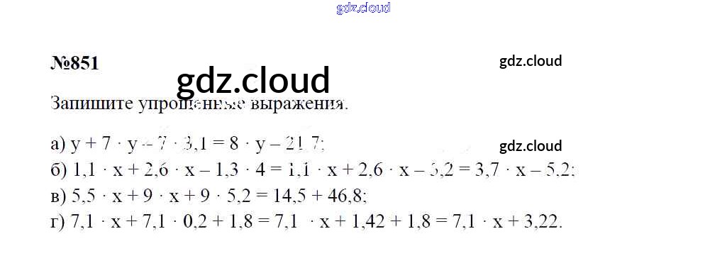 Ответ на задание 851 Учебник Математика за 5 (пятый) класс Зубарева, Мордкович 2015