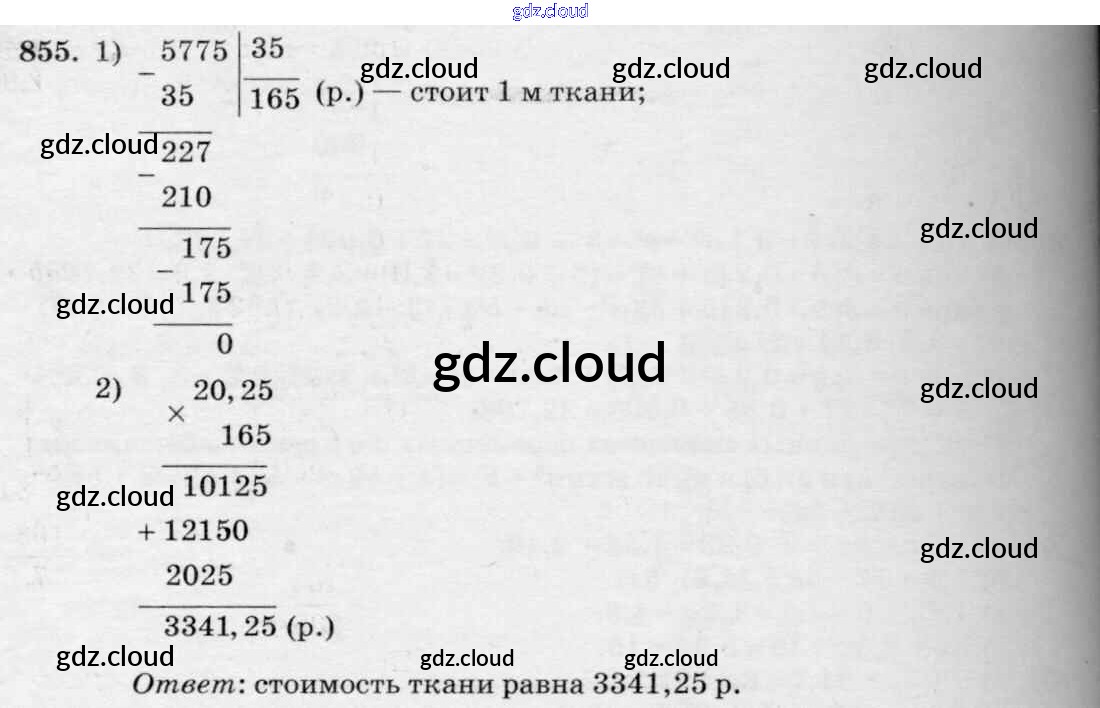 Ответ на задание 855 Учебник Математика за 5 (пятый) класс Зубарева, Мордкович 2015