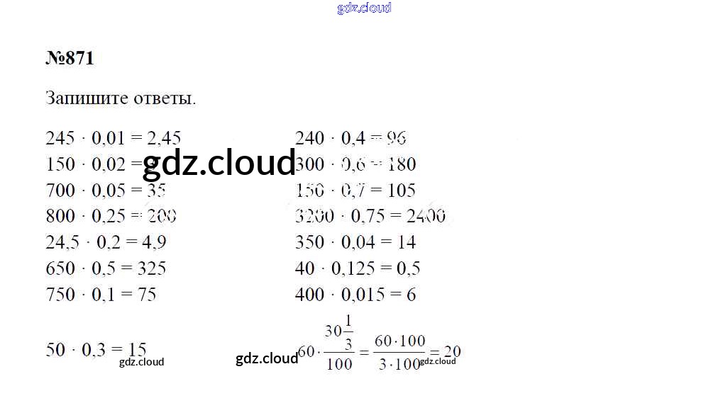 Ответ на задание 871 Учебник Математика за 5 (пятый) класс Зубарева, Мордкович 2015