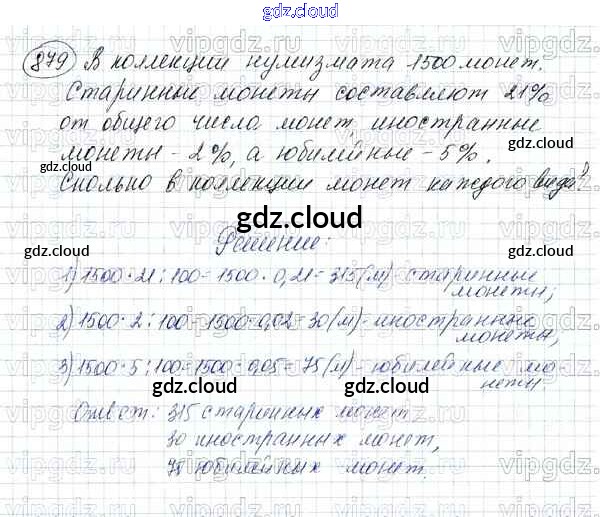 Ответ на задание 879 Учебник Математика за 5 (пятый) класс Зубарева, Мордкович 2015