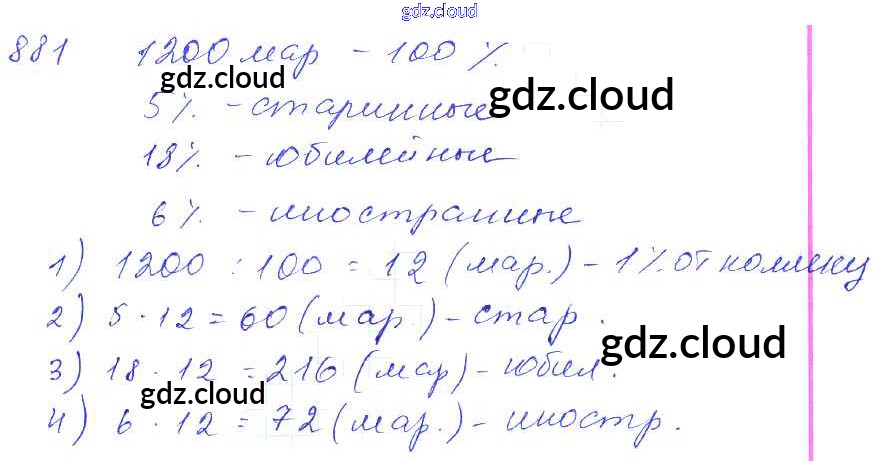 Ответ на задание 881 Учебник Математика за 5 (пятый) класс Зубарева, Мордкович 2015