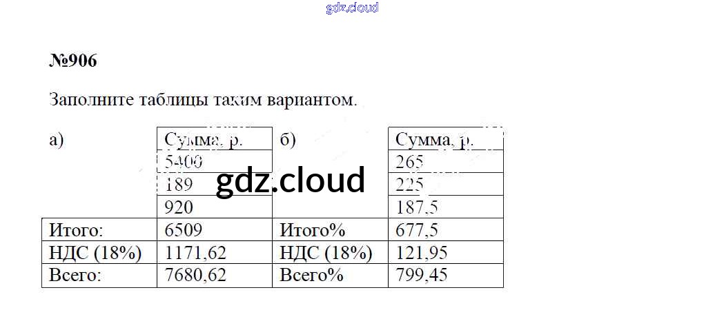 Ответ на задание 906 Учебник Математика за 5 (пятый) класс Зубарева, Мордкович 2015