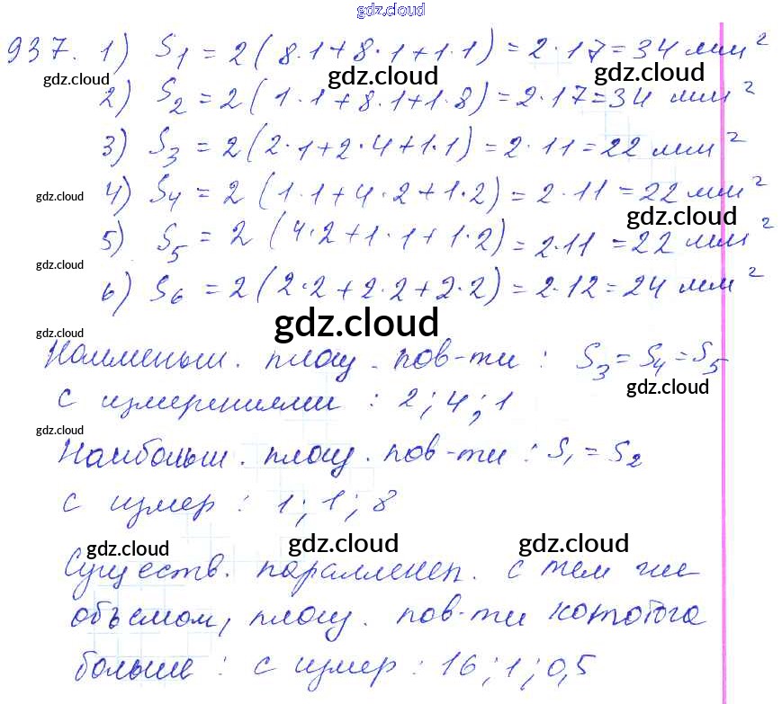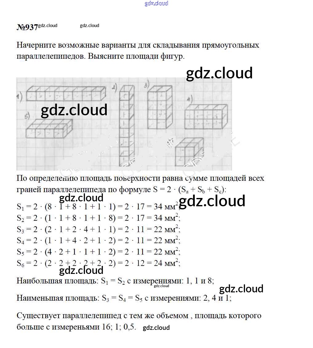 Ответ на задание 937 Учебник Математика за 5 (пятый) класс Зубарева, Мордкович 2015