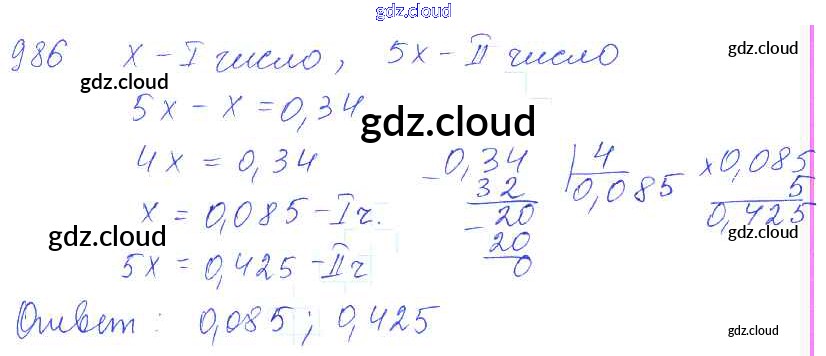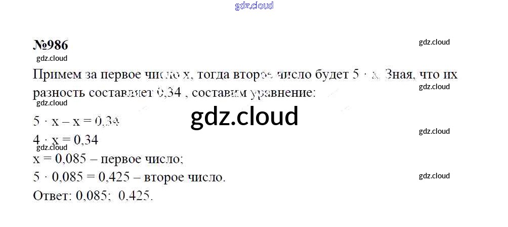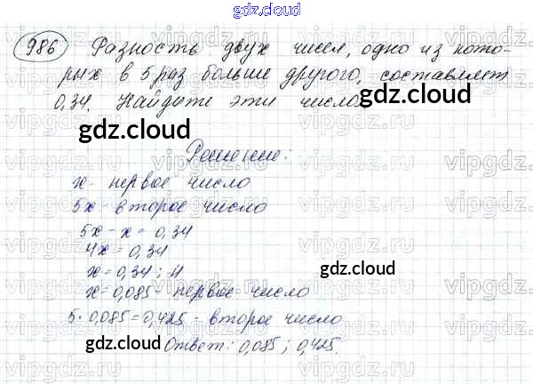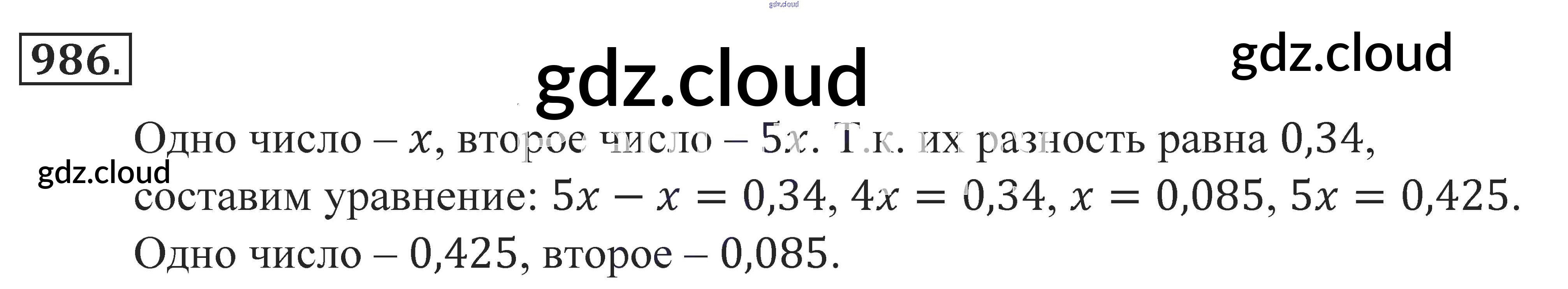 Ответ на задание 986 Учебник Математика за 5 (пятый) класс Зубарева, Мордкович 2015