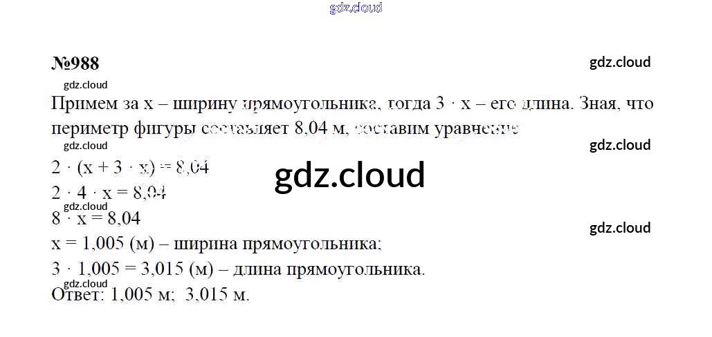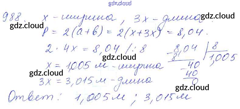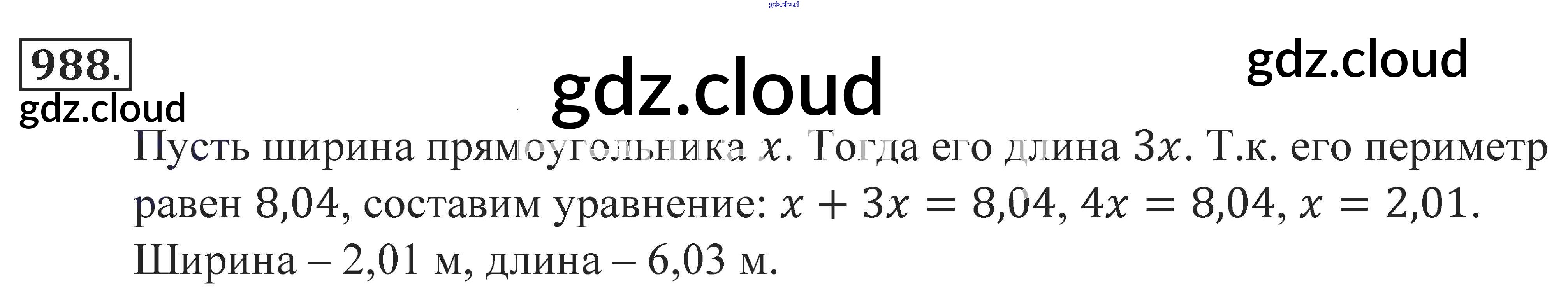 Ответ на задание 988 Учебник Математика за 5 (пятый) класс Зубарева, Мордкович 2015