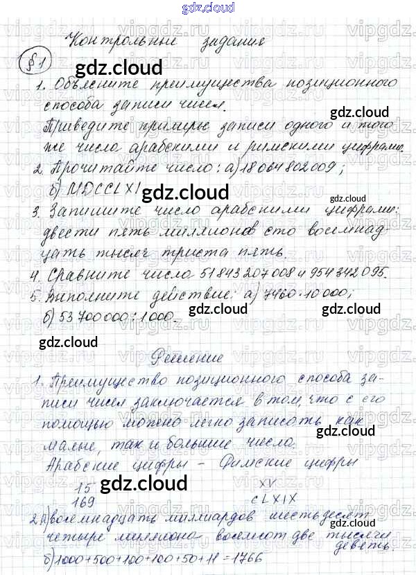 Ответы к контрольным вопросам и заданиям по Математике 5 класс Учебник Зубарева Мнемозина