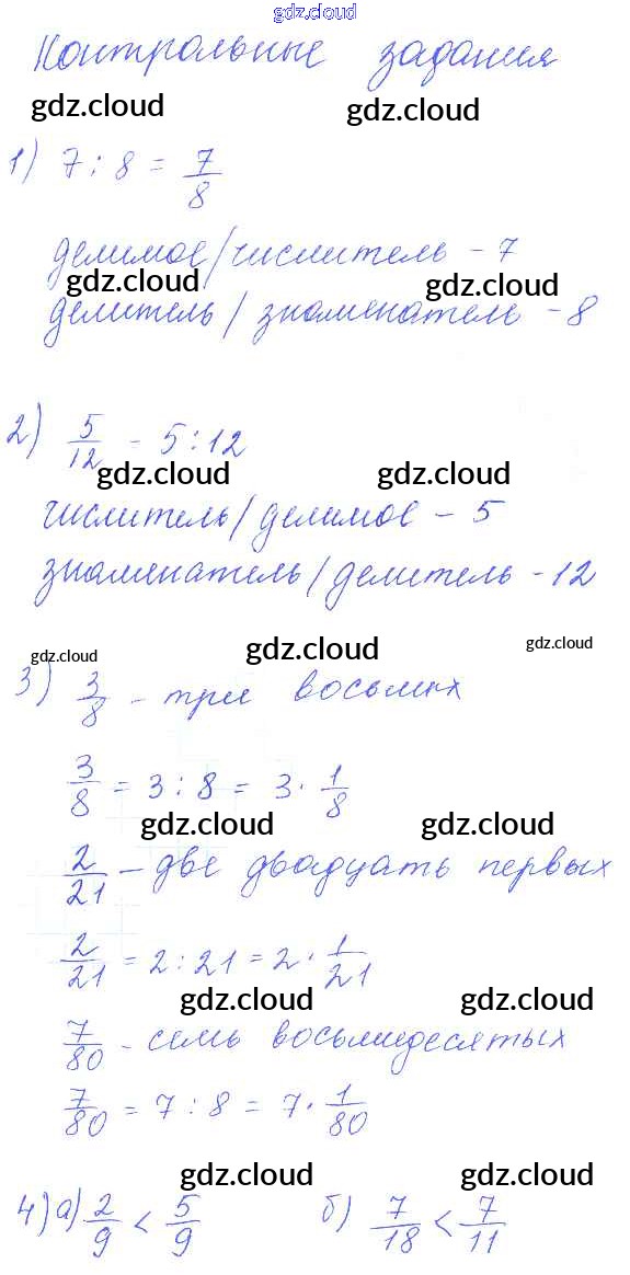 Ответы к контрольным вопросам и заданиям по Математике 5 класс Учебник Зубарева Мнемозина