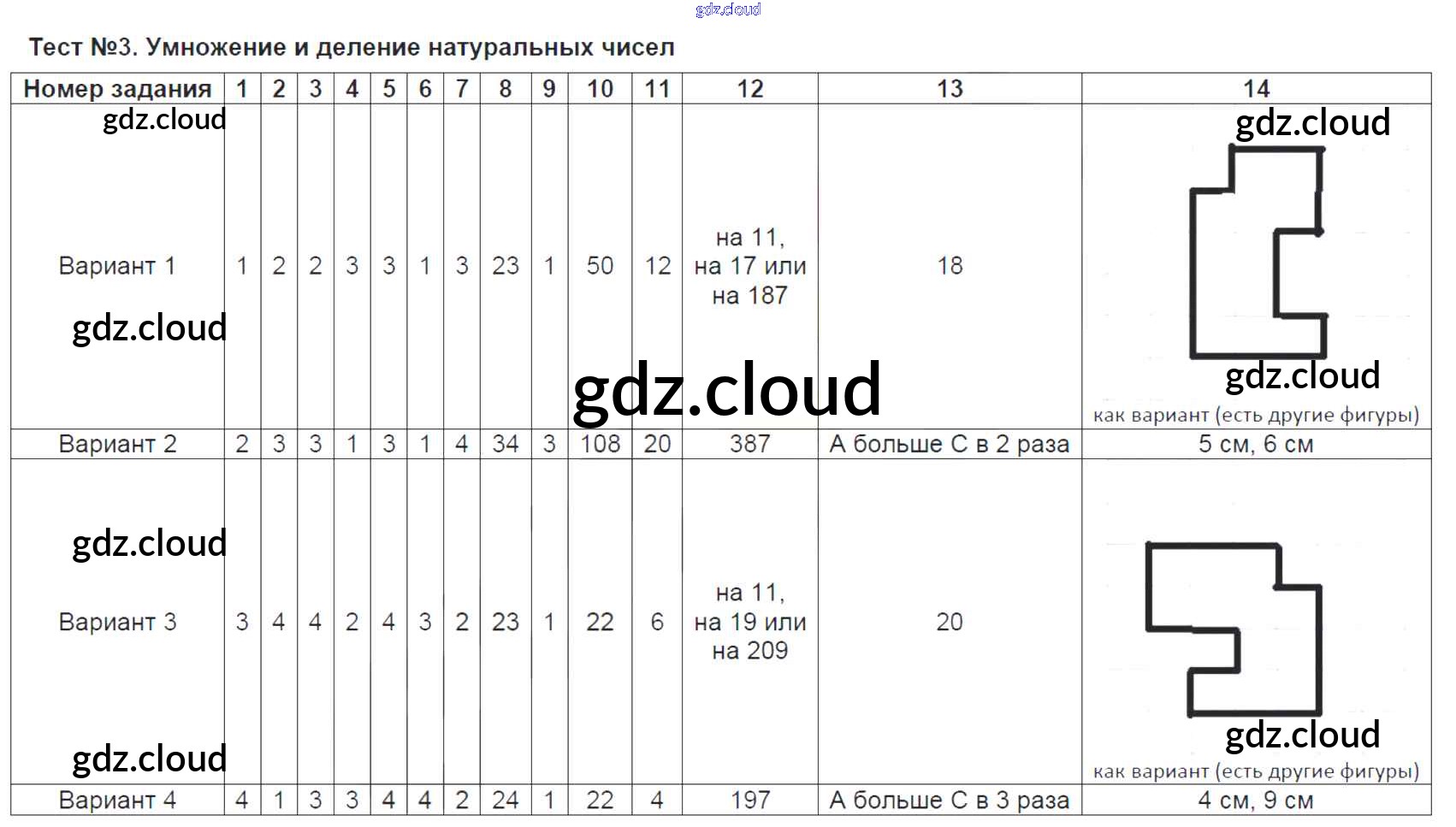 Ответ на задание Тест №3. Умножение и деление натуральных чисел Тесты Математика за 5 (пятый) класс Ерина УМК 2017